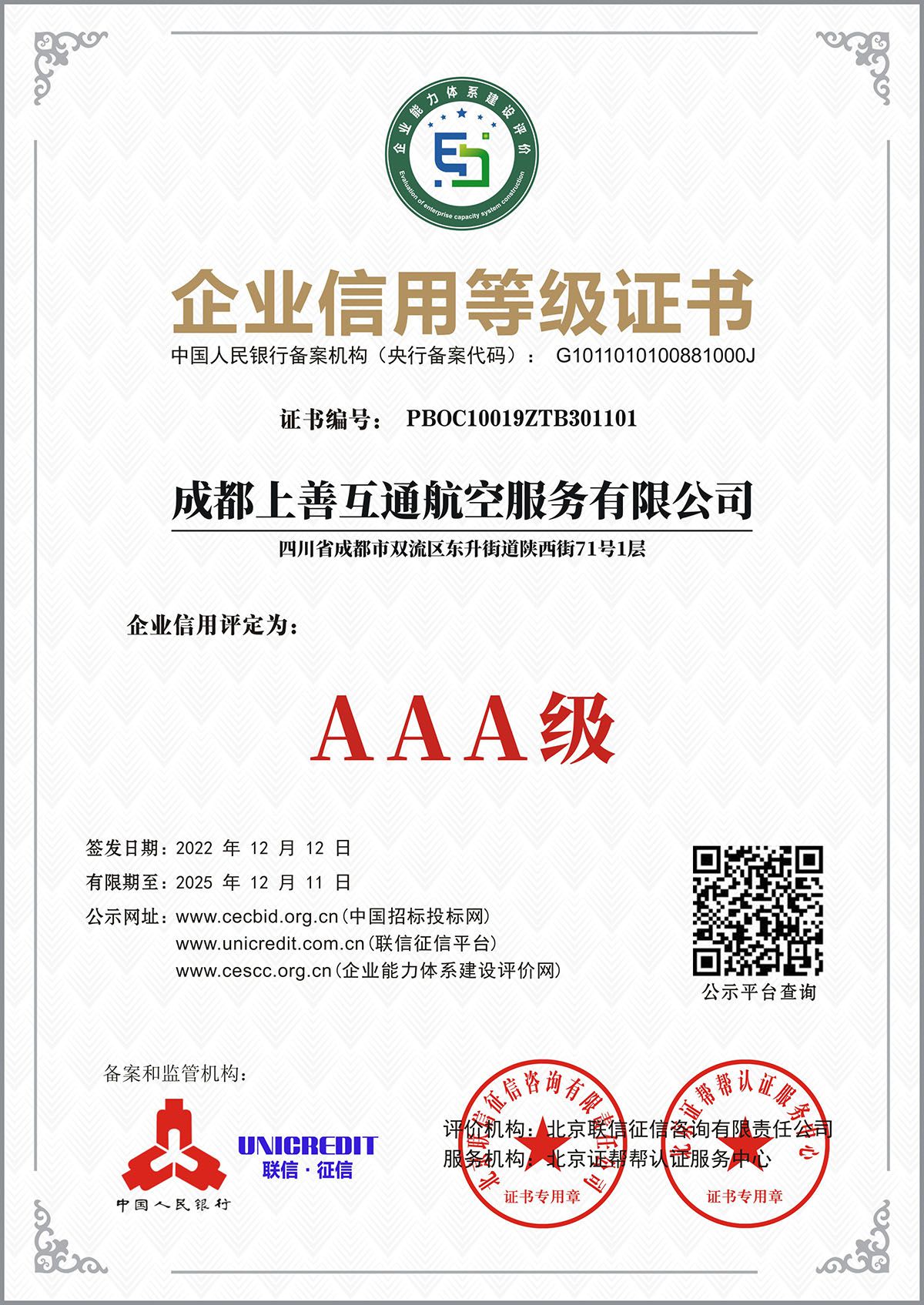 企业信用等级证书